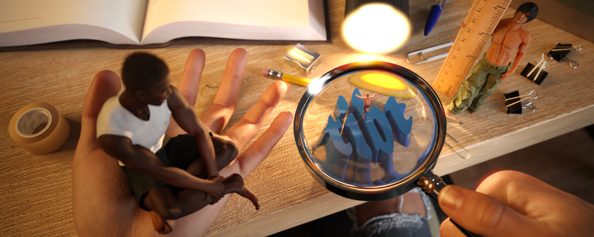 This is tibt and I am a longtime creator of M/m macrophilia cgi art with the focus on the shrinking aspect. As you might notice I focus on playful scenes with young adults as "giant"-characters where the bigger guy is dominant but the smaller guy is never physically hurt.