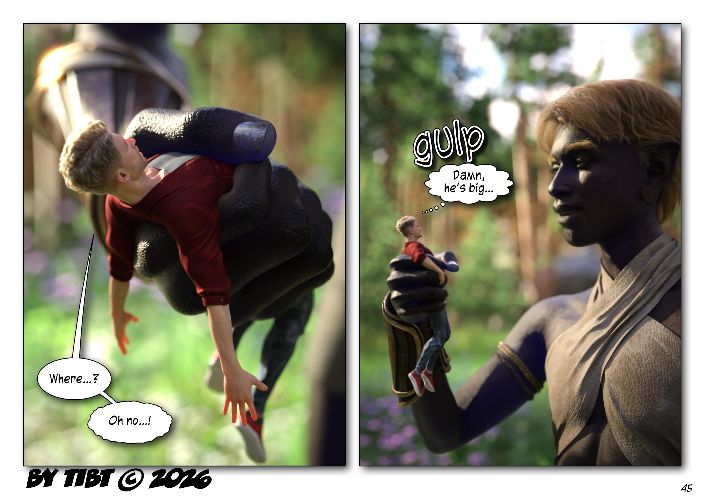 A M/m sizekink graphic novel, all characters are 18 years or older. How did this happen? One moment Ryan was having a boring roadtrip, the next he's tumbling into a strange world where everything is much larger than usual. How will he get home? And will he be able to avoid the huge inhabitants that have taken interest in him?